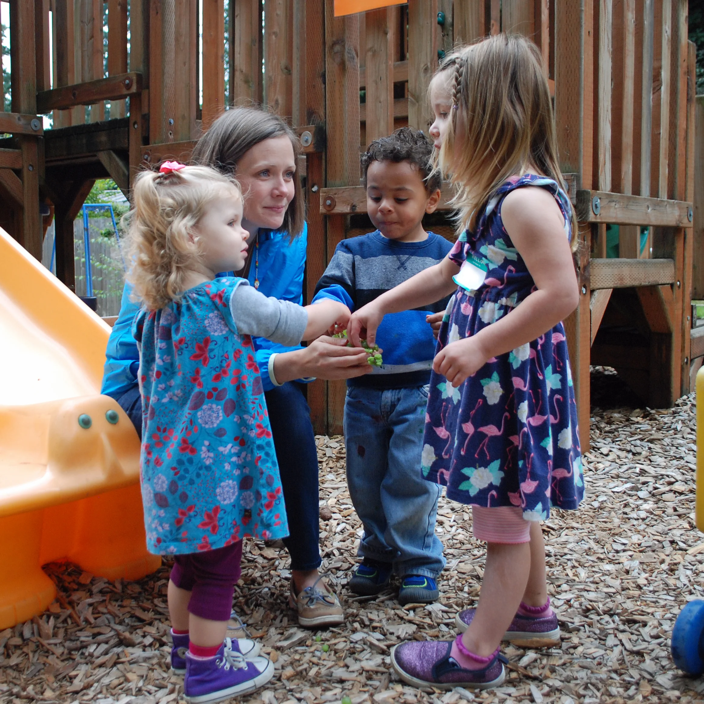 Children enjoy group activities, empathy and emotion coaching, and a discovery corner while continuing to explore cooking, art and sensory exploration, music, outdoor play, and dramatic play.